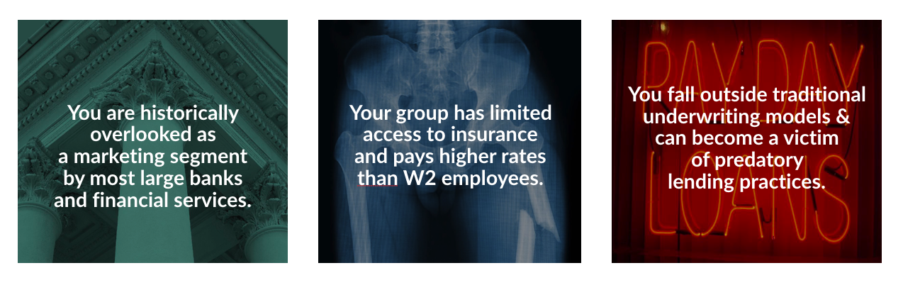 Your peer group is overlooked due to an unpredictable income stream and operating outside the status quo.